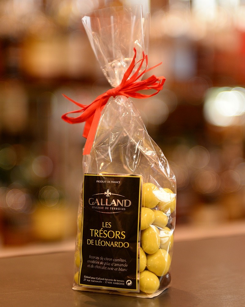 Les citrons confits aux deux chocolats sont élaborés avec un coeur d'écorce de citrons confits débité en cube et macéré dans l'huile essentiel de citron, habillé d'une pâte d'amandes. Ils sont ensuite enrobés de deux chocolats, chocolat noir et chocolat blanc teinté jaune.